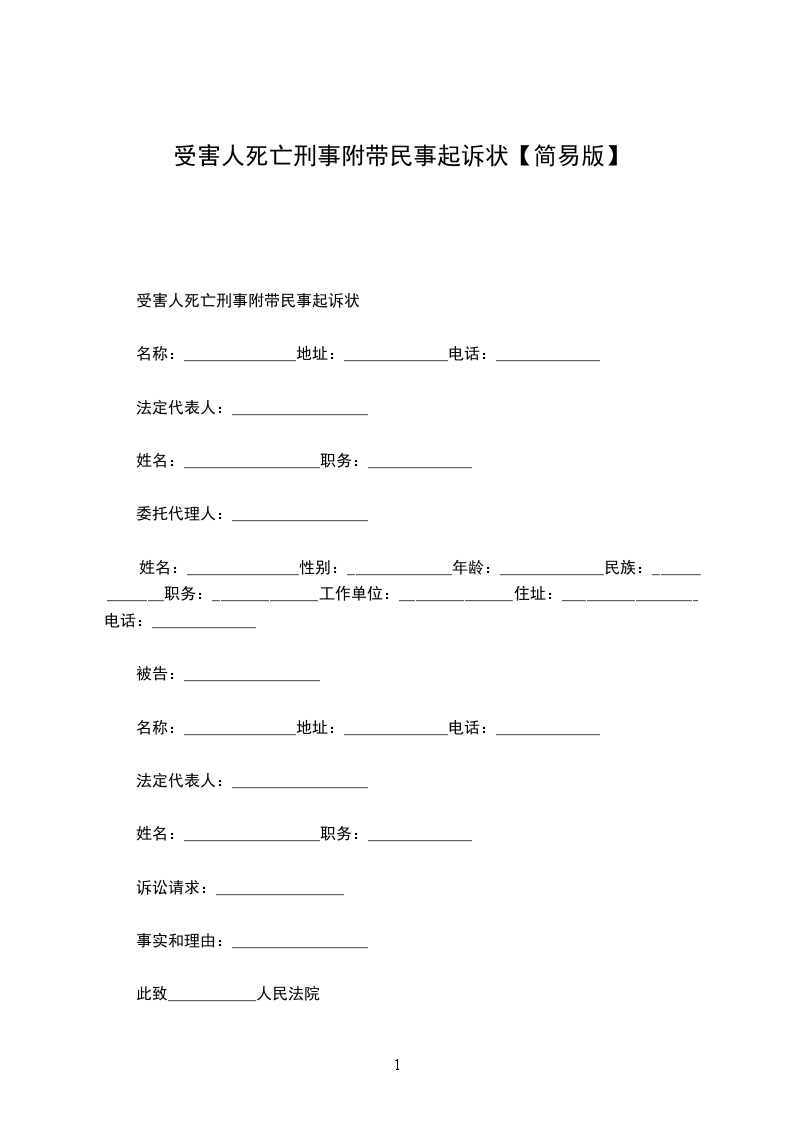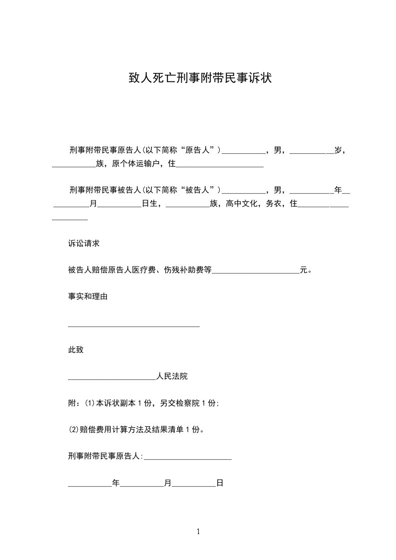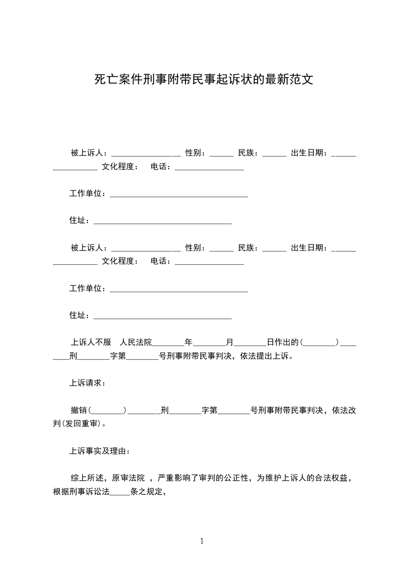死亡案件刑事附带民事起诉状的范文