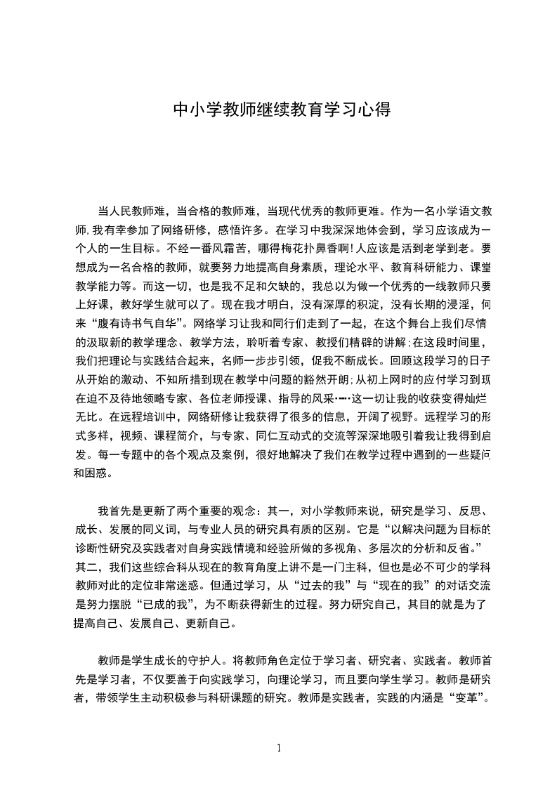 我首先是更新了两个重要的观念:其一,对小学教师来说,研究是学习、反思、成长、发展的同义词,与专业人员的研究具有质的区别。它是“以解决问题为目标的诊断性研究及实践者对自身实践情境和经验所做的多视角、多层次的分析和反省。”其二,我们这些综合科从现在的教育角度上讲不是一门主科,但也是必不可少的学科。教师对此的定位非常迷惑。但通过学习,从“过去的我”与“现在的我”的对话交流,是努力摆脱“已成的我”,为不断获得新生的过程。努力研究自己,其目的就是为了提高自己、发展自己、更新自己。