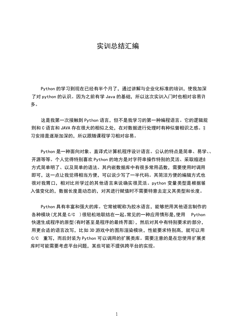 Python的学习到现在已经有半个月了,通过讲解与企业化标准的培训,使我加深了对python的认识。因为之前有学Java的基础,所以这次实训入门时也相对容易许多。