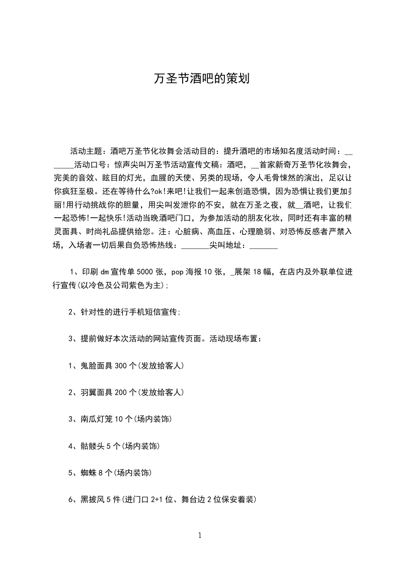 2、场内布置:假南瓜:大10个、小20个(圆型)石膏骷髅10具