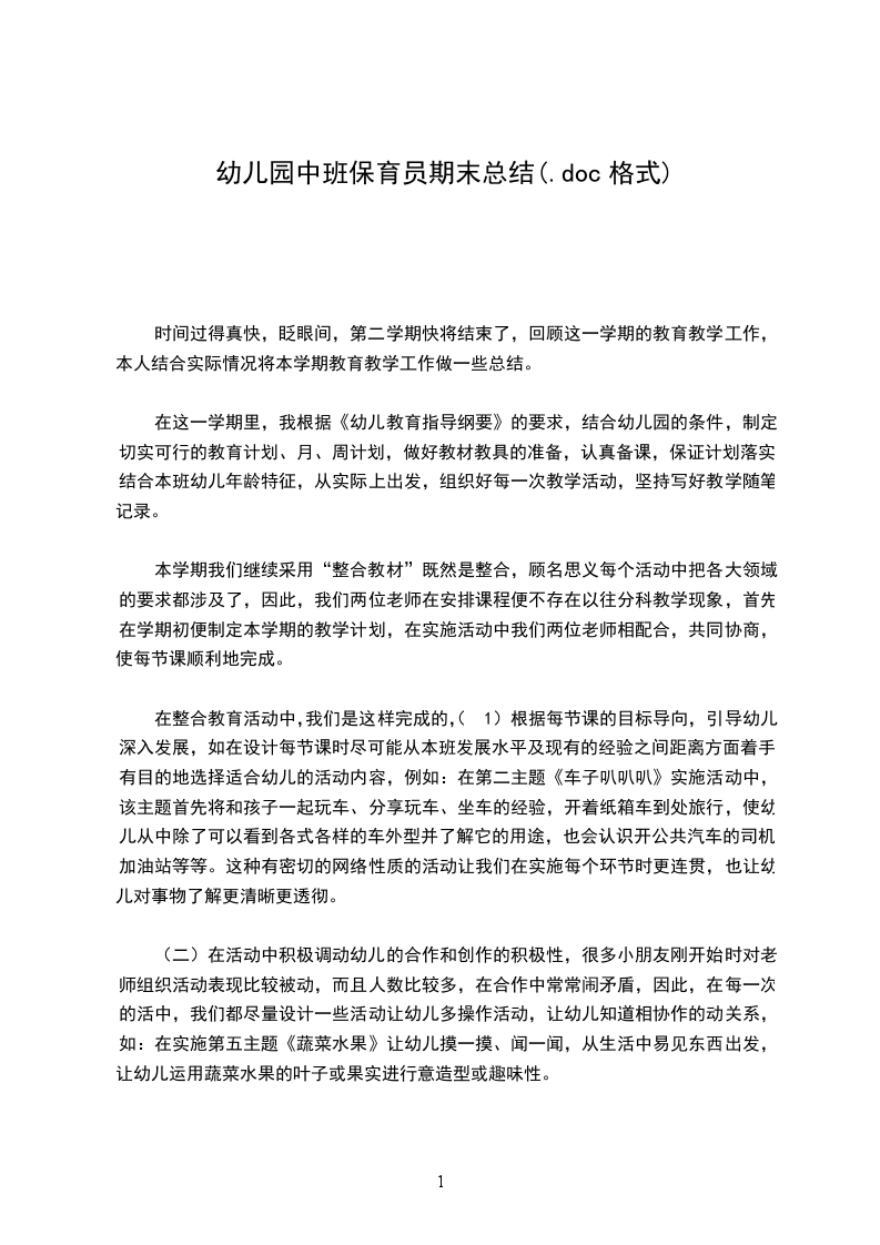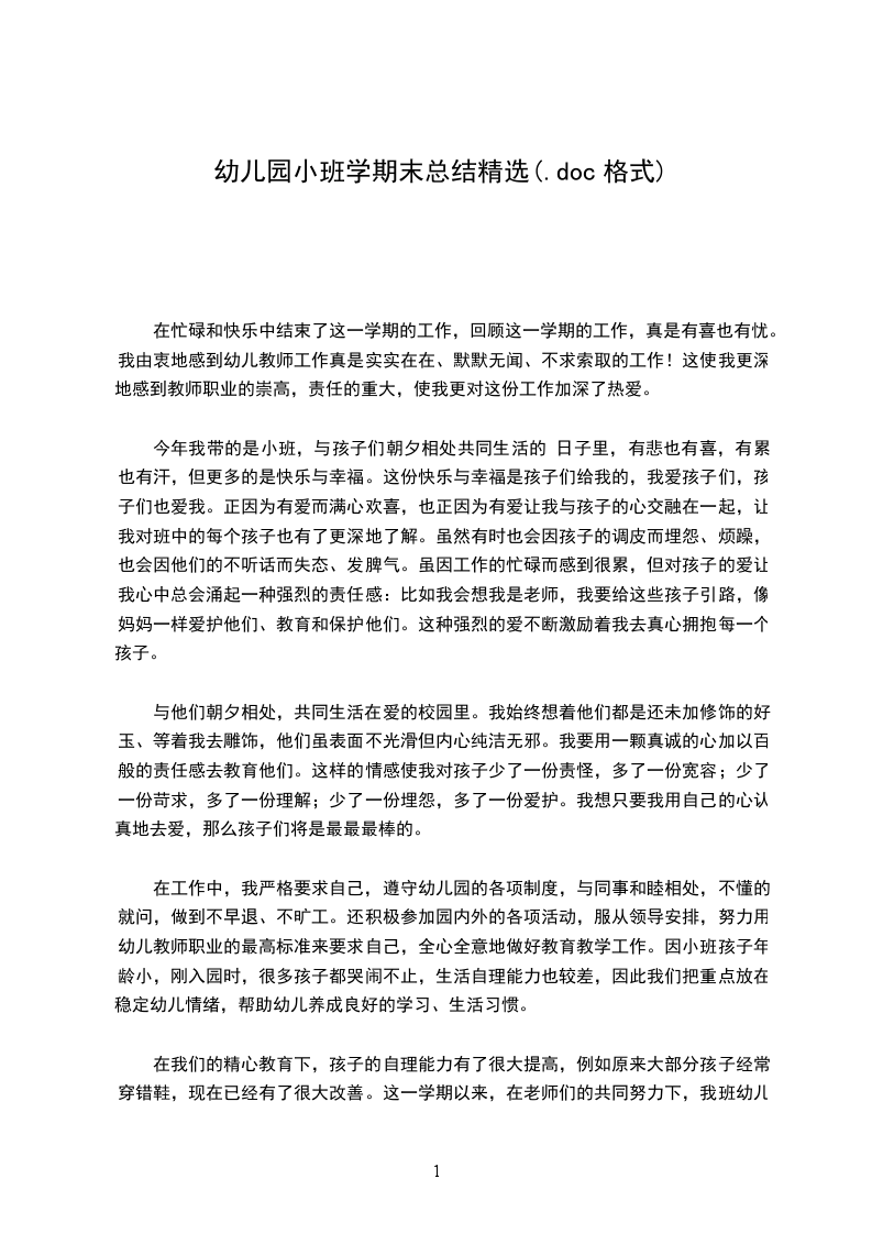 “光阴似箭,日月如梭”一个学期的时间飞快的就过去了,看着孩子们花朵一样的笑容和永远也不肯停下来的小小身影,我的心中有着许多的感慨。想想刚刚开学时,从没带过小班的我被分配到小班,面对一群小可爱让自己有点不知所搓。由于是下学期,所以哭闹的幼儿较少。但是有几个哭闹特别厉害,当时我看着他们伤心可怜的样子,我就扮演妈妈的角色,既当老师又当妈妈,我就是他们的亲人,是他们的安慰的天使,那样,我就可以更好的安抚他们了。他们也就这样渐渐地适应了园内的生活。现将本学期主要工作任务进行简单汇报:
