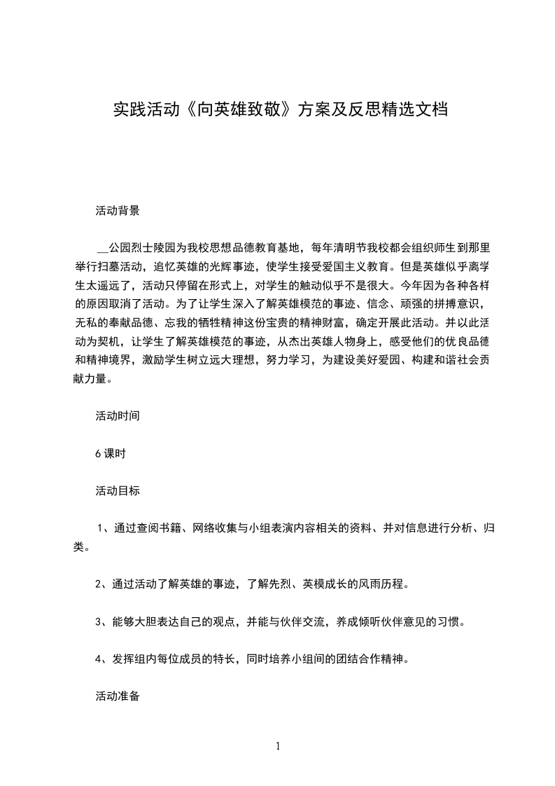 __公园烈士陵园为我校思想品德教育基地,每年清明节我校都会组织师生到那里举行扫墓活动,追忆英雄的光辉事迹,使学生接受爱国主义教育。但是英雄似乎离学生太遥远了,活动只停留在形式上,对学生的触动似乎不是很大。今年因为各种各样的原因取消了活动。为了让学生深入了解英雄模范的事迹、信念、顽强的拼搏意识,无私的奉献品德、忘我的牺牲精神这份宝贵的精神财富,确定开展此活动。并以此活动为契机,让学生了解英雄模范的事迹,从杰出英雄人物身上,感受他们的优良品德和精神境界,激励学生树立远大理想,努力学习,为建设美好爱园、构建和谐社会贡献力量。