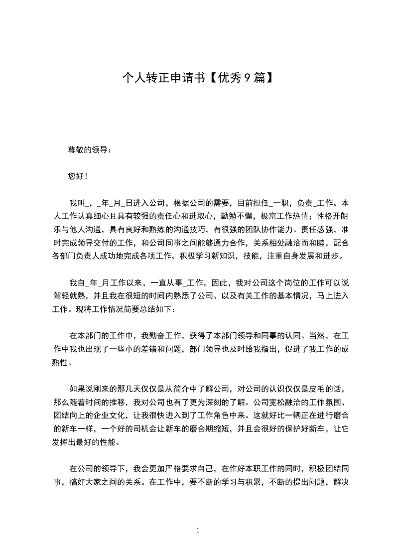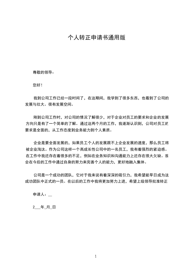 我于2___年_月_日成为公司的试用员工,到今天实习店长已满,根据公司的规章制度,现申请转为正式店长。