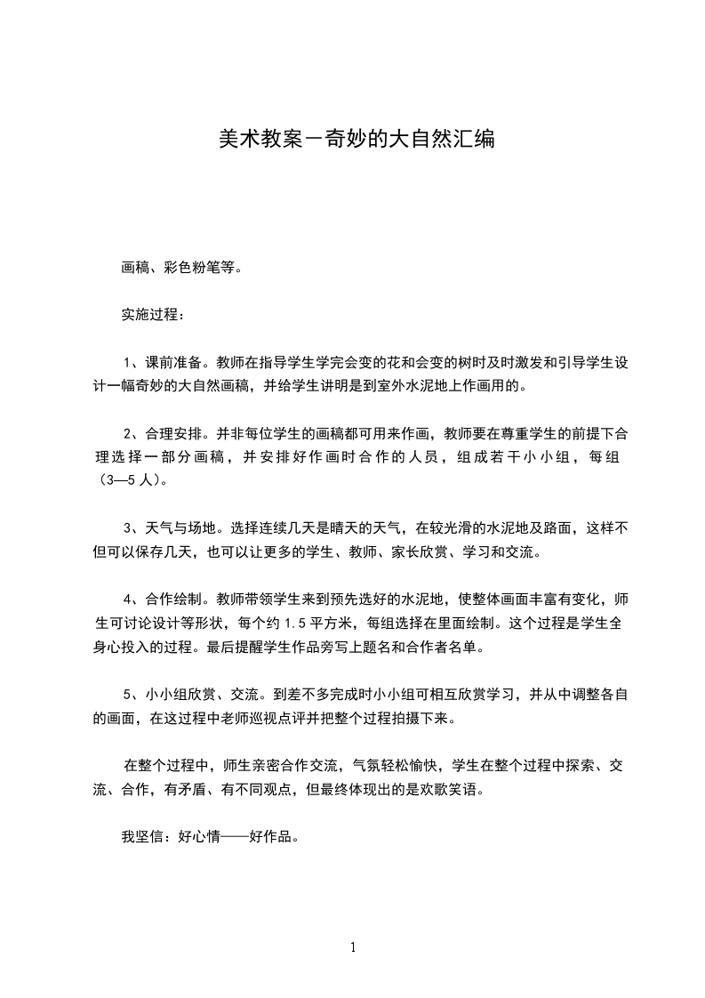 1、课前准备。教师在指导学生学完会变的花和会变的树时及时激发和引导学生设计一幅奇妙的大自然画稿,并给学生讲明是到室外水泥地上作画用的。