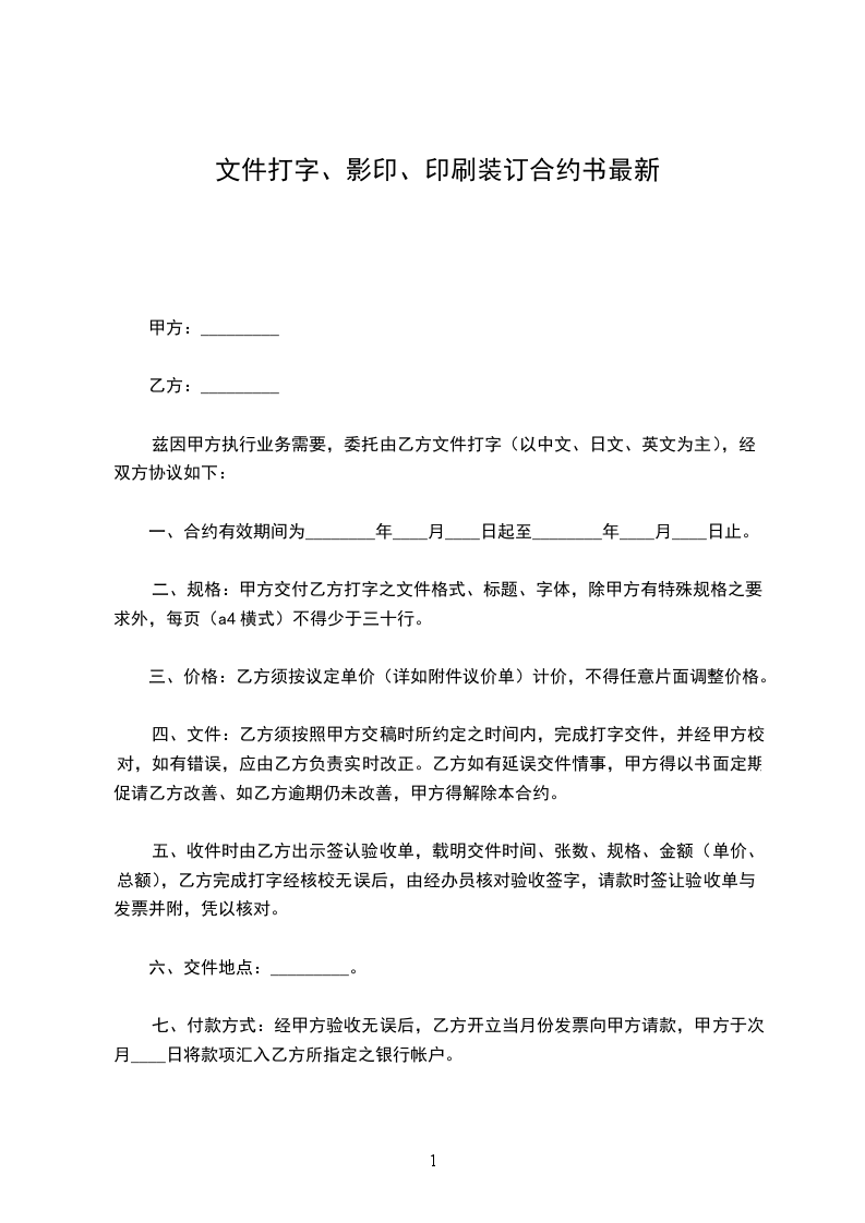 二、规格:甲方交付乙方打字之文件格式、标题、字体,除甲方有特殊规格之要求外,每页(a4横式)不得少于三十行。