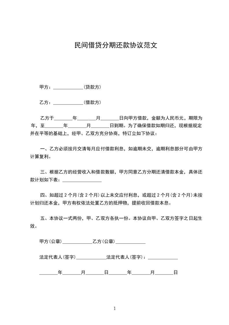 三、根据乙方的经营收入和借款数额,甲方同意乙方分期还清借款本金,具体还款计划如下表:_________________