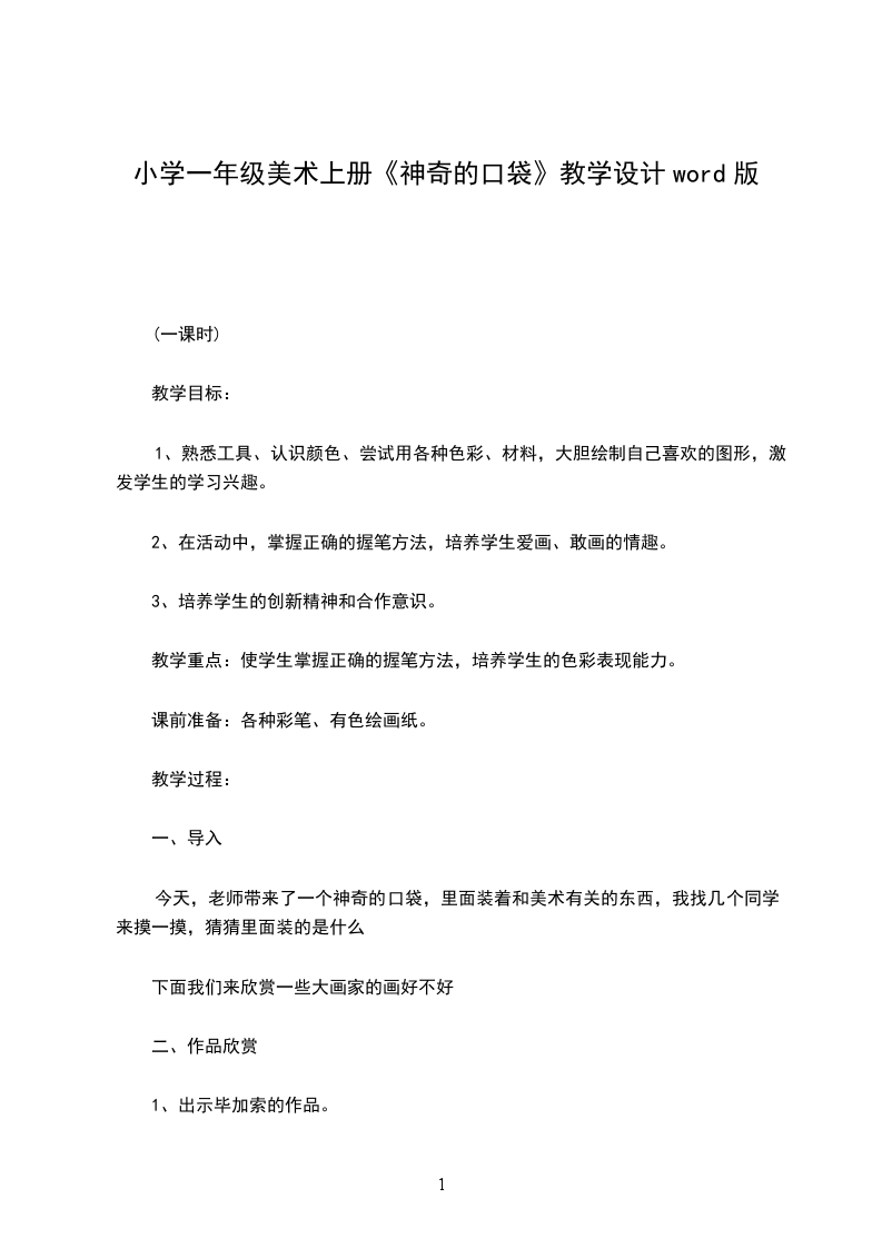 今天,老师带来了一个神奇的口袋,里面装着和美术有关的东西,我找几个同学来摸一摸,猜猜里面装的是什么