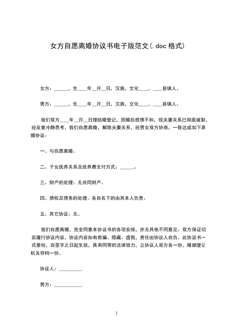 女方:______,生____年__月__日,汉族,文化____,____县镇人。