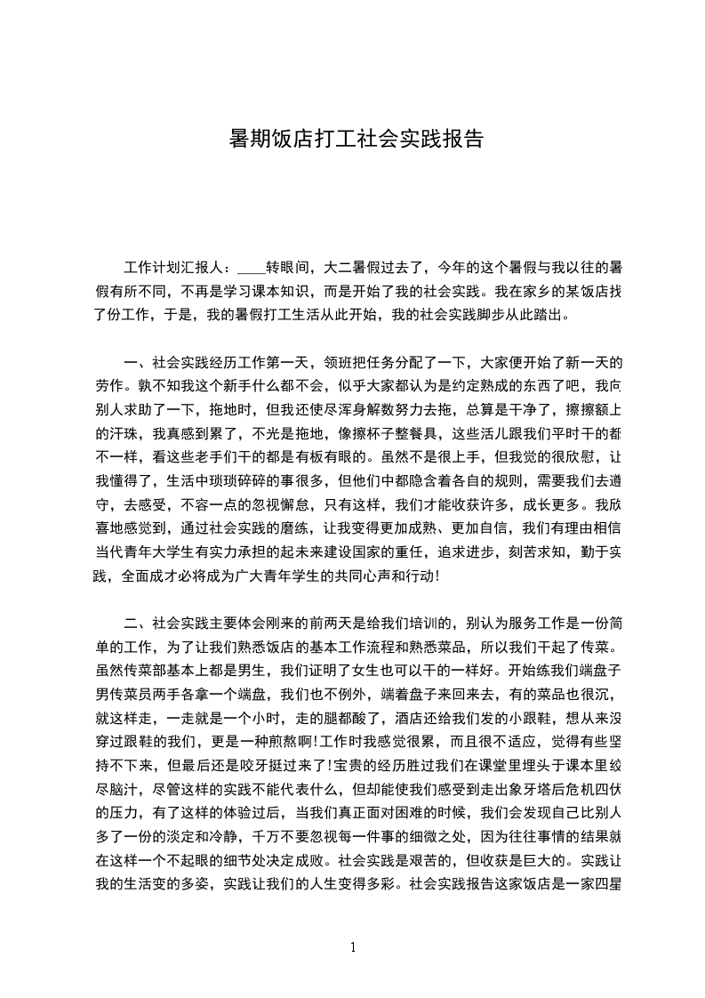 炎炎夏日列日当头。正是因为有这样的环境,正激起了我要在暑假参加社会实践的决心。我要看看我能否在恶劣的环境中有能力依靠自己的又手和大脑维持自己的生存,同时,也想通过亲身体验社会实践让自己更进一步了解社会,在实践中增长见识,锻炼自己的才干,培养自己的韧性,更为重要的是检验一下自己所学的东西能否被社会所用,自己的能力能否被社会所承认。想通过社会实践,找出自己的不足和差距所在。