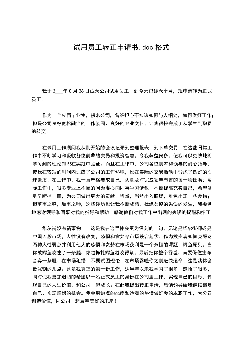 这段时间在公司我学到了很多,感悟了很多;看到公司的迅速发展,我深深地感到骄傲和自豪,也更加迫切的希望以一名正式员工的身份在这里工作,实现自己的奋斗目标,体现自己的人生价值,和公司一起成长。在此我提出转正申请,恳请领导给我继续锻炼自己、实现理想的机会。我会用谦虚的态度和饱满的热情做好我的本职工作,为公司创造价值,同公司一起展望美好的未来!