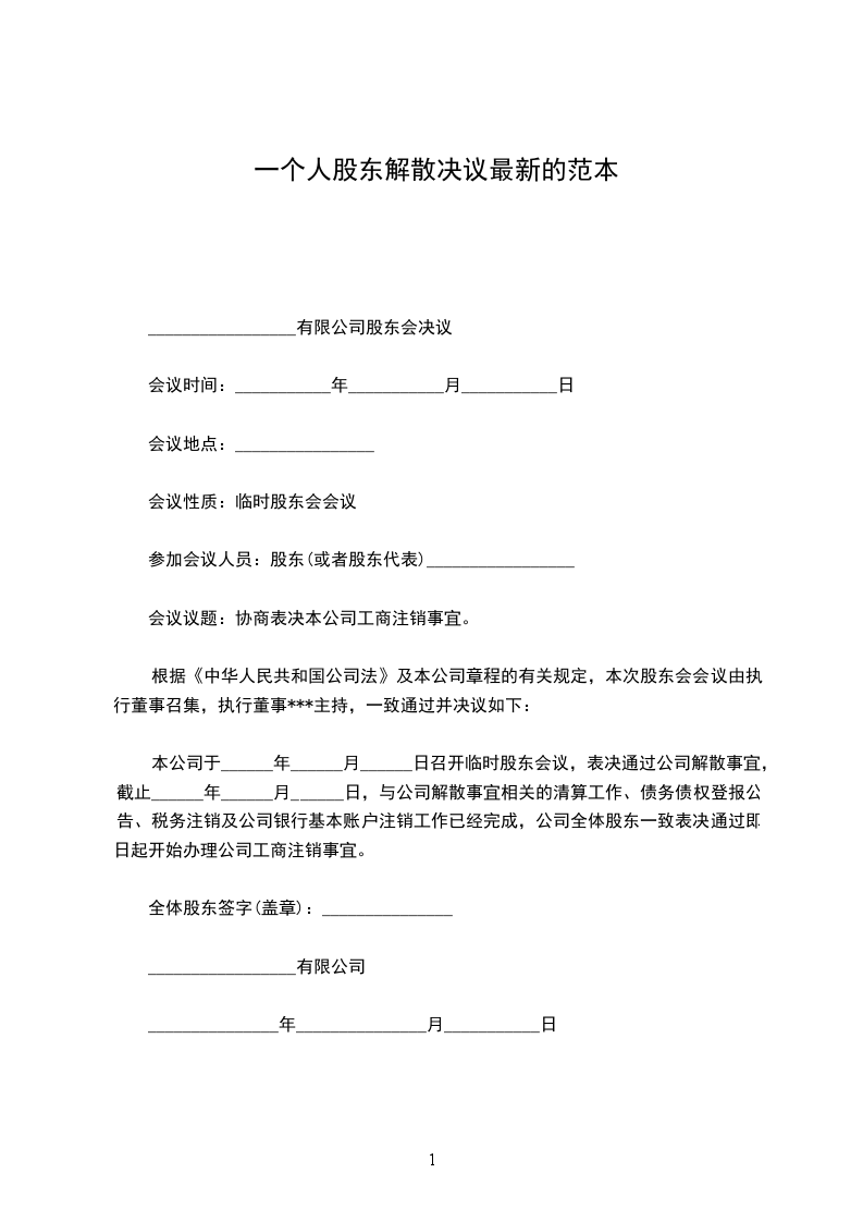 本公司于______年______月______日召开临时股东会议,表决通过公司解散事宜,截止______年______月______日,与公司解散事宜相关的清算工作、债务债权登报公告、税务注销及公司银行基本账户注销工作已经完成,公司全体股东一致表决通过即日起开始办理公司工商注销事宜。