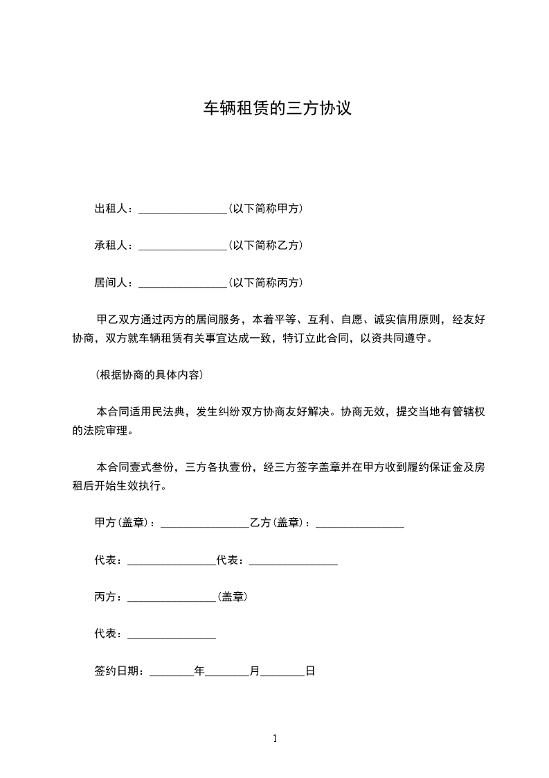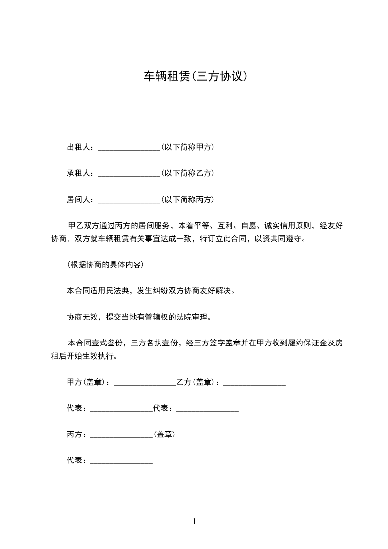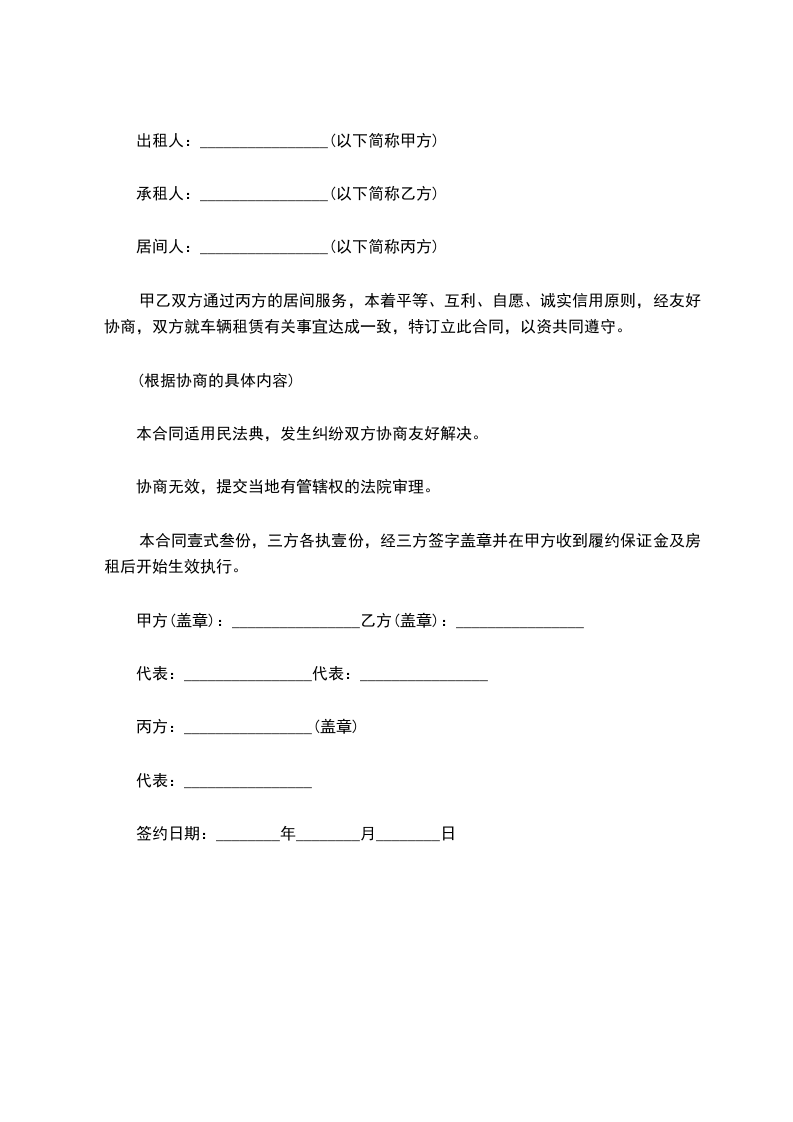 甲乙双方通过丙方的居间服务,本着平等、互利、自愿、诚实信用原则,经友好协商,双方就车辆租赁有关事宜达成一致,特订立此合同,以资共同遵守。