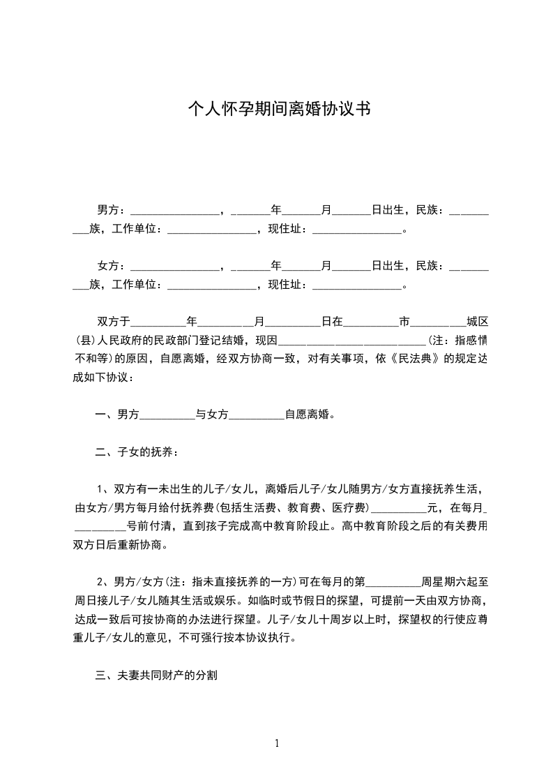 怀孕期间的离婚协议