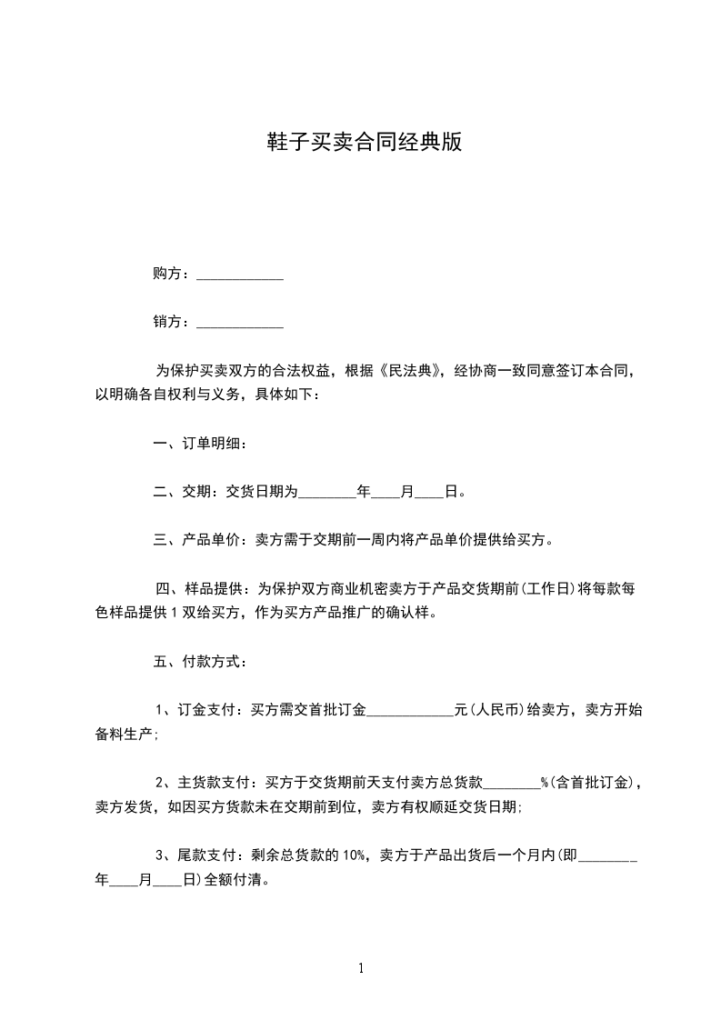 1、及时向供方下订单,说明所需的皮鞋种类、货号、数量等。
