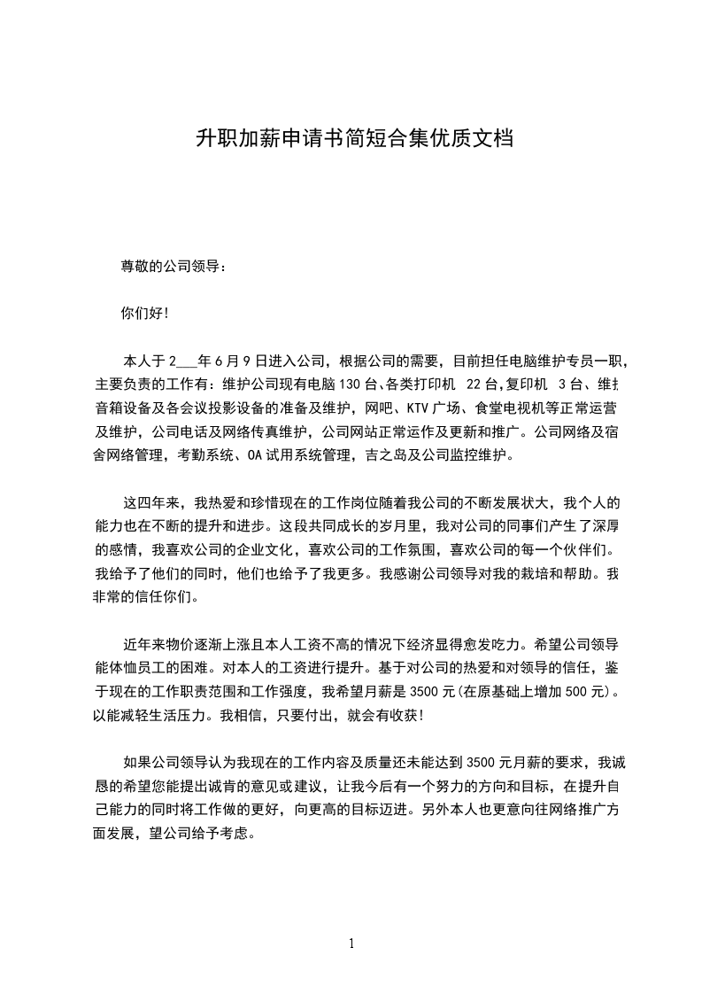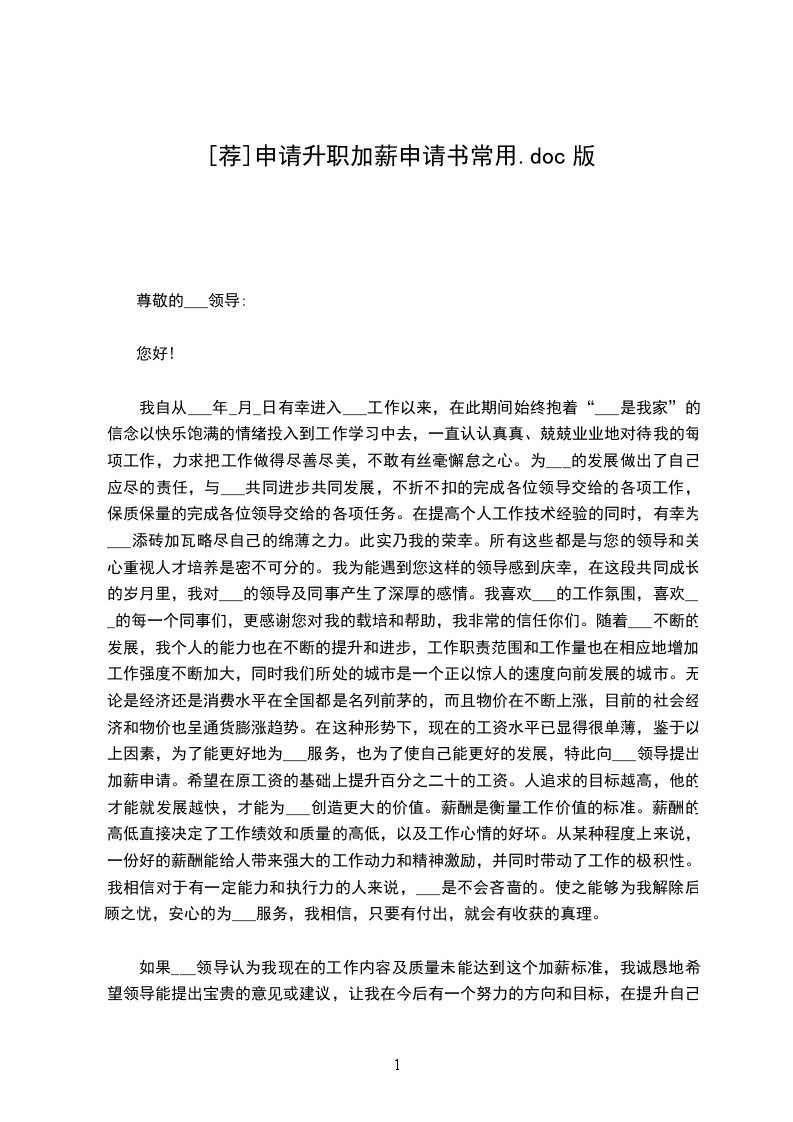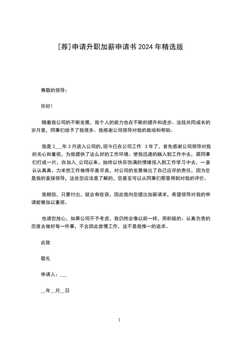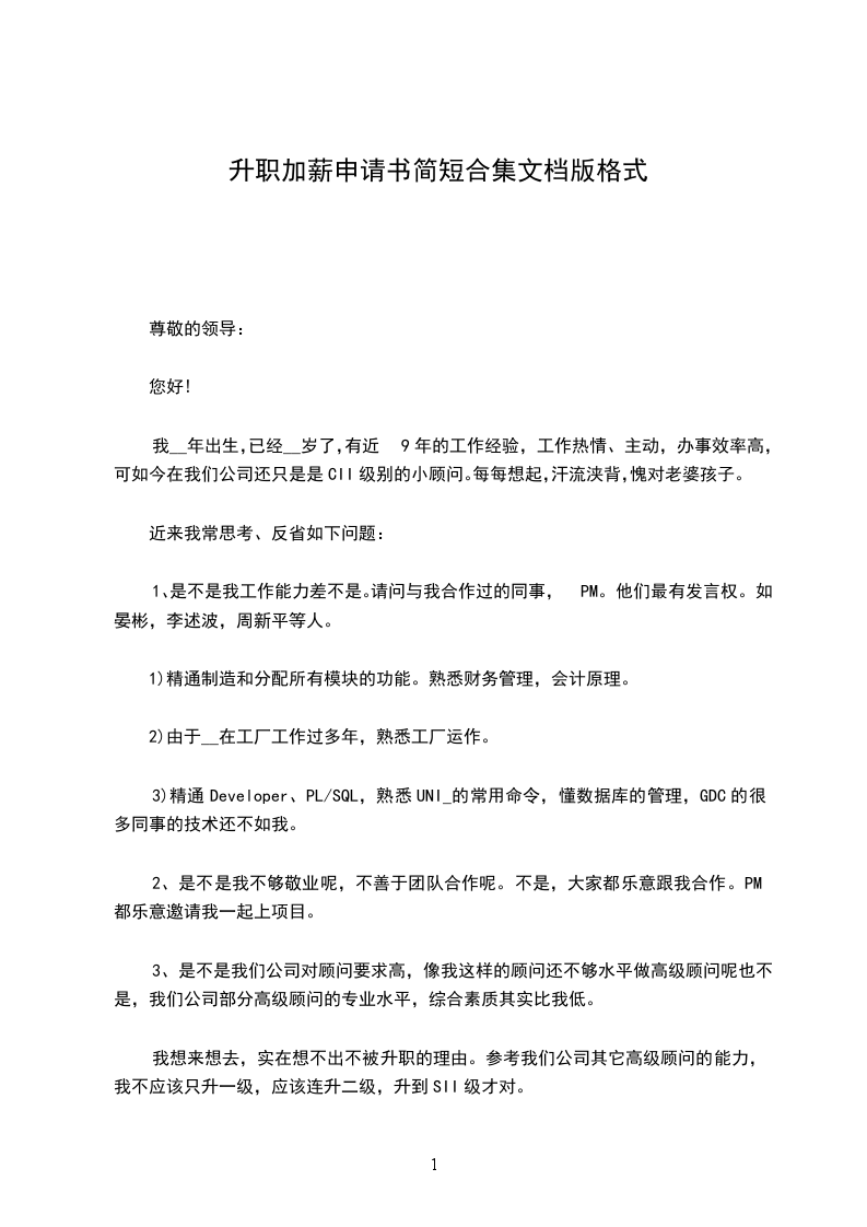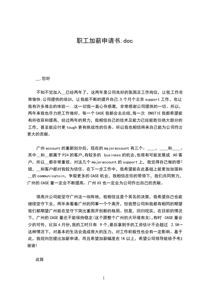 本人从毕业后一直在---工作,至今已经是第---个年头过半了。经过慎重的考虑,特向您提出加薪请求,理由如下: