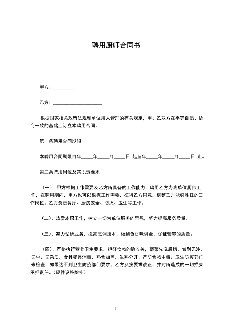 二、根据甲方的工作安排,聘用乙方在________________工作岗位。