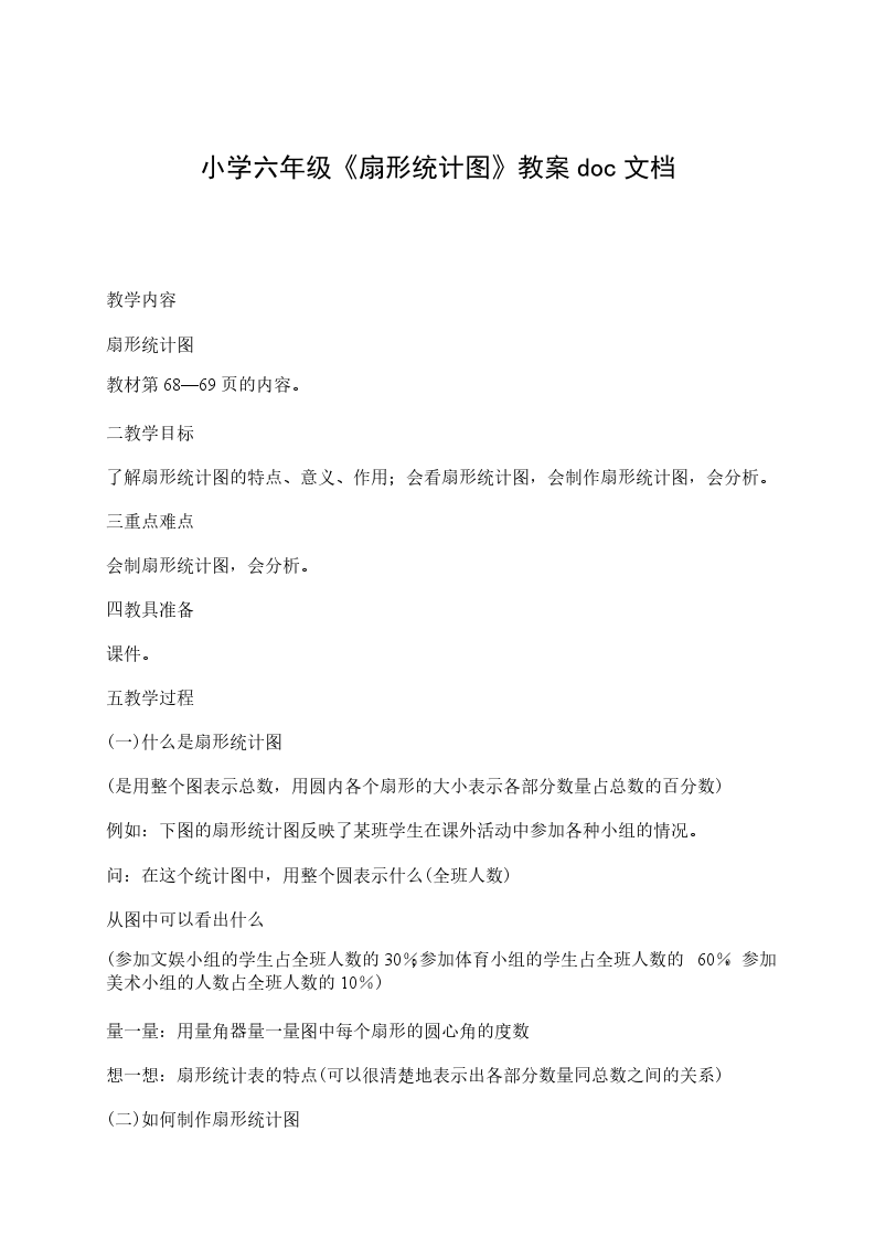 了解扇形统计图的特点、意义、作用;会看扇形统计图,会制作扇形统计图,会分析。