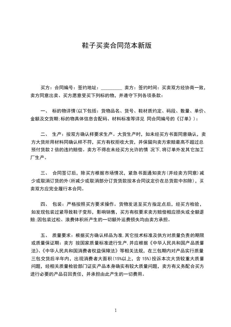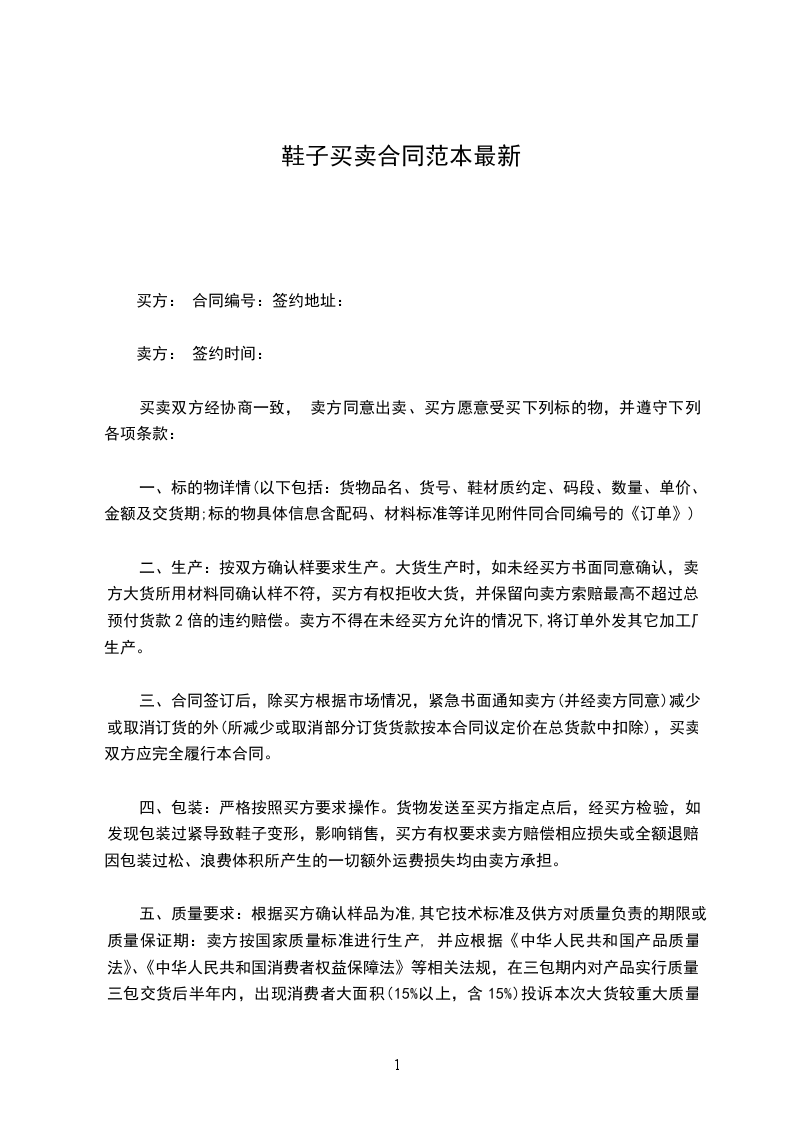 四、包装:严格按照买方要求操作。货物发送至买方指定点后,经买方检验,如发现包装过紧导致鞋子变形,影响销售,买方有权要求卖方赔偿相应损失或全额退赔;因包装过松、浪费体积所产生的一切额外运费损失均由卖方承担。