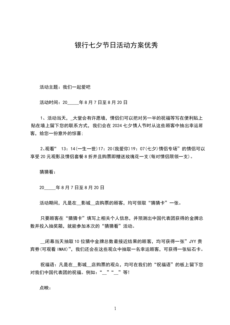 浪漫七夕恋爱“逸”夏:20_____年8月7日至8月20日,登陆微博,参与并@__IMAX影城#浪漫七夕恋爱“逸”夏#微博抢票活动,分享你们和__的故事,即有机会获得__影城赠送的观影券两张(共5个名额)。