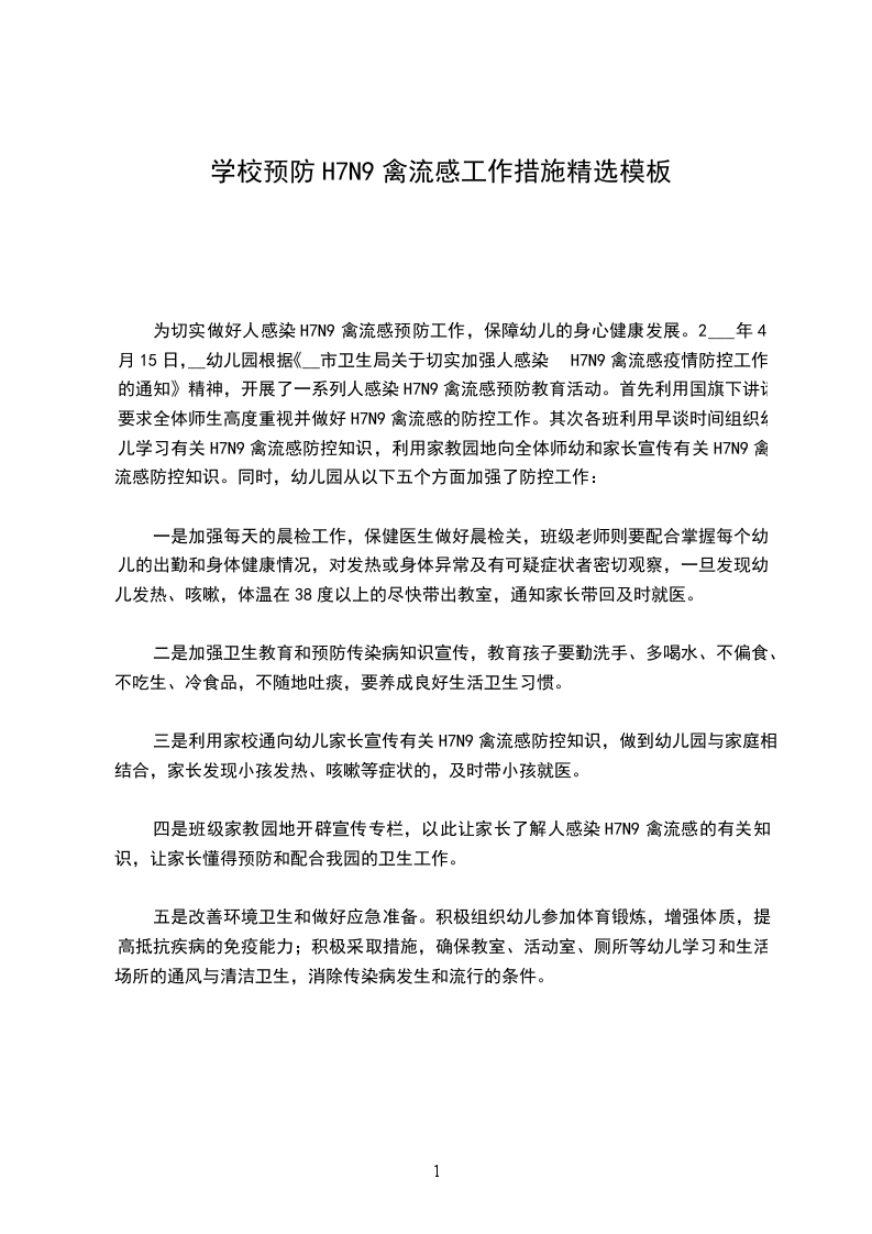 三是利用家校通向幼儿家长宣传有关H7N9禽流感防控知识,做到幼儿园与家庭相结合,家长发现小孩发热、咳嗽等症状的,及时带小孩就医。