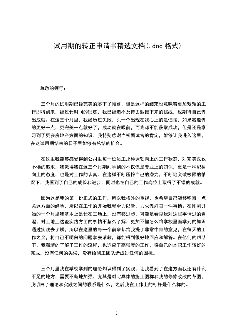 以上是我的工作基本情况,经过实习期的锻炼,我已经达到了转正要求,在此我提出转正申请,恳求领导给我一个为__效力的机会。