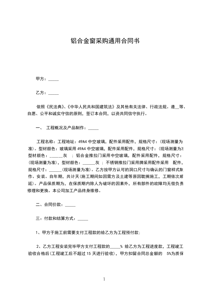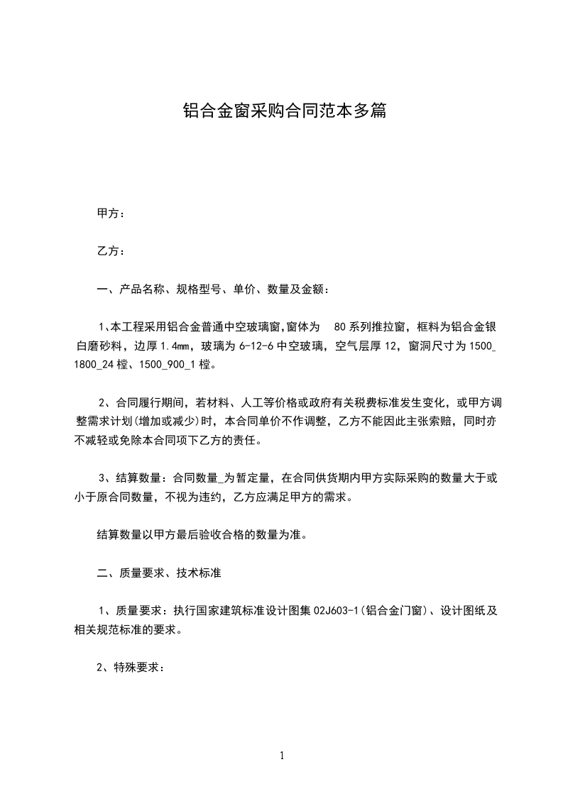 铝合金窗采购合同范文2