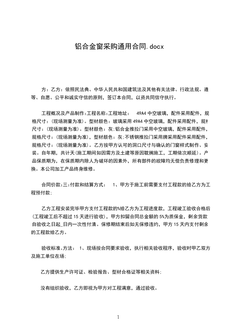 铝合金窗采购合同范文3