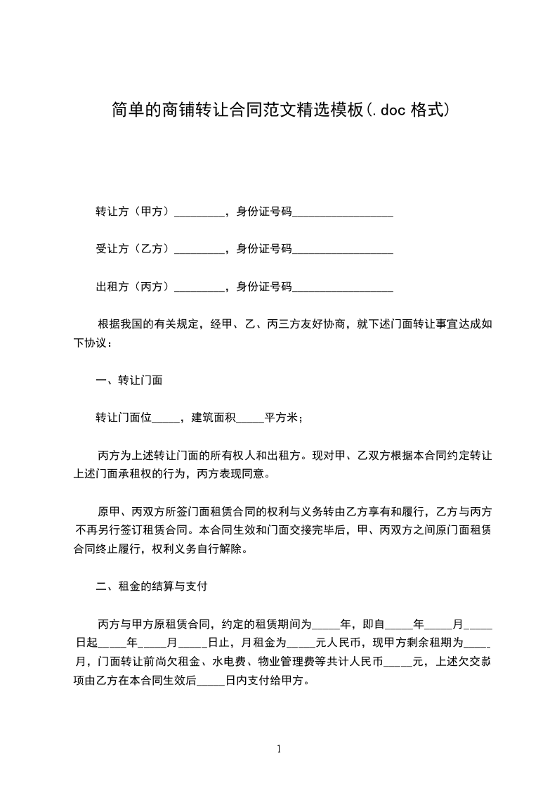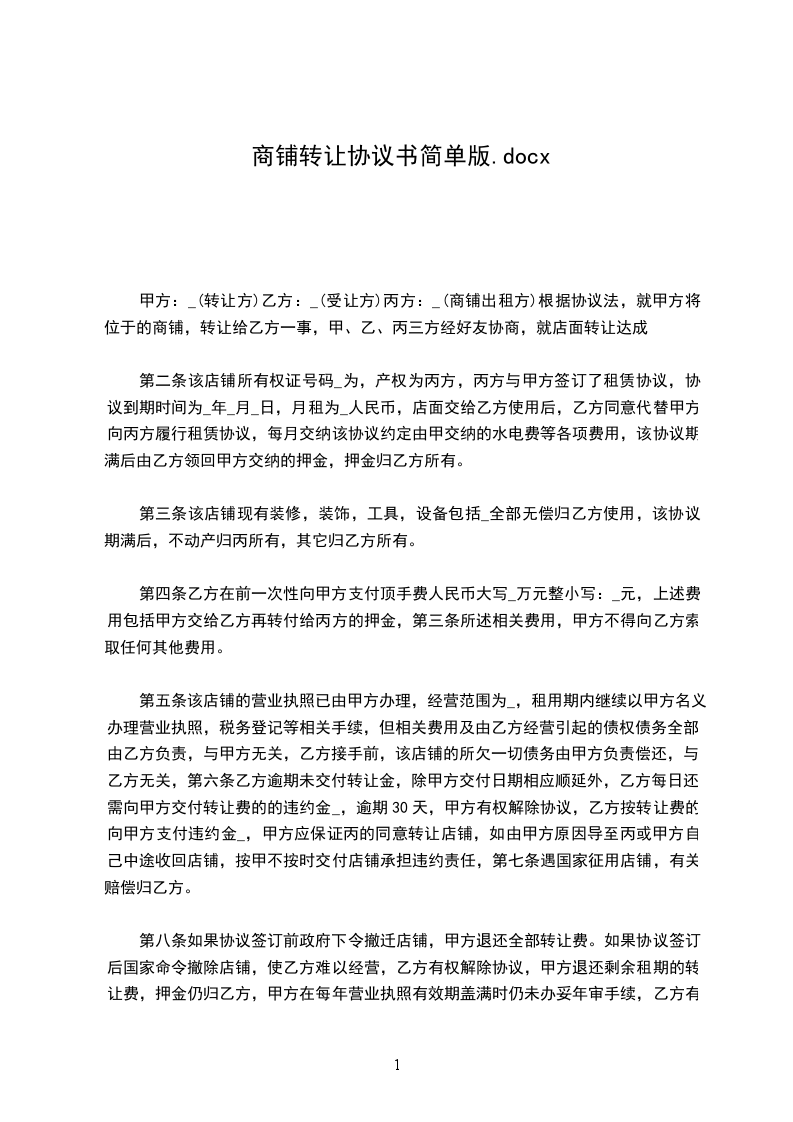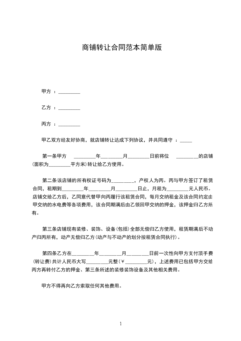 根据我国的有关规定,经甲、乙、丙三方友好协商,就下述门面转让事宜达成如下协议: