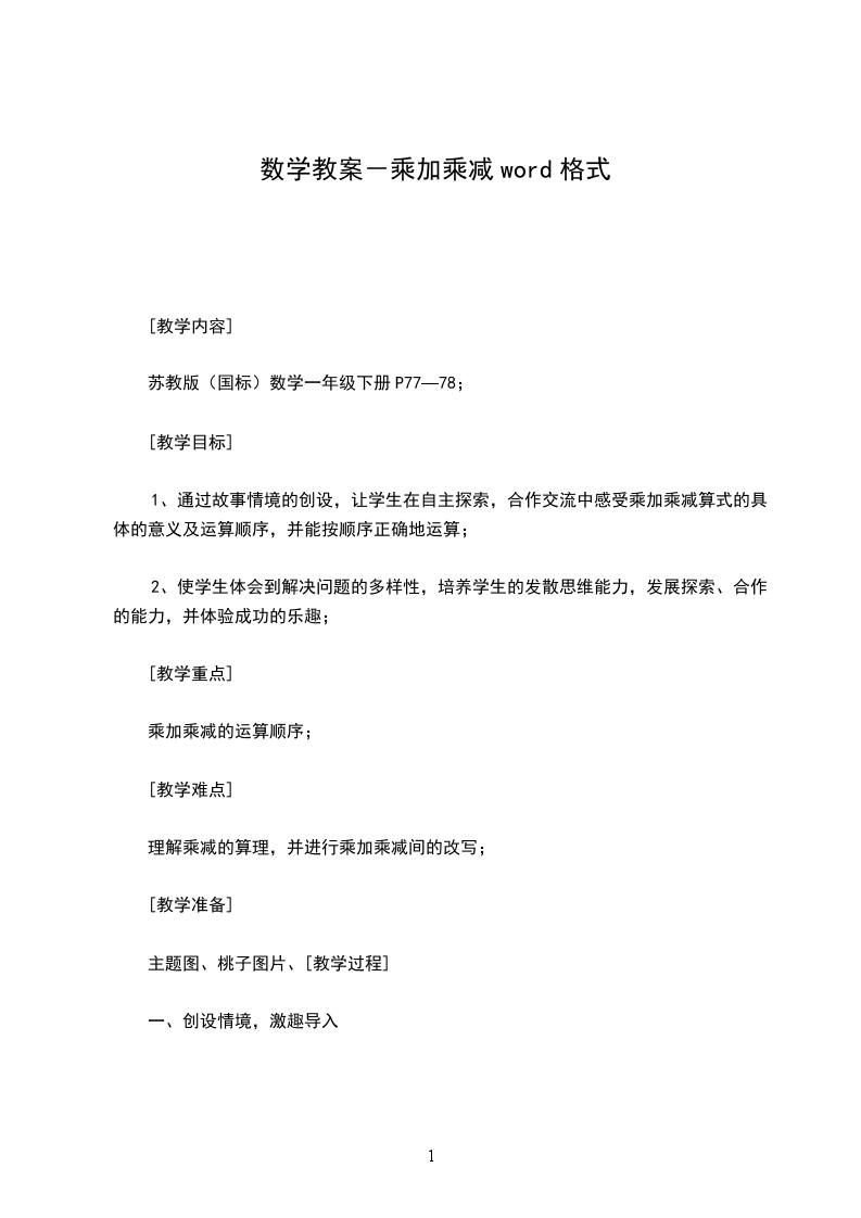 1、通过故事情境的创设,让学生在自主探索,合作交流中感受乘加乘减算式的具体的意义及运算顺序,并能按顺序正确地运算;