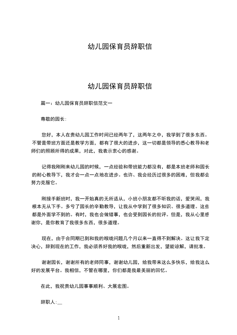 作为保育员,我没有完成自己的工作,因为我因为生病就要选择离开,我总想要做好一点,可是自己已经坚持不住,我不希望自己在岗位上出现什么问题,毕竟如果没有人能够好好看守好这些娇嫩的花朵,让他们受到了伤害岂不是我的责任,这样的责任让我不管粗心,也不管轻易的放弃,只想好好的做好自己的责任,所以离职是一个不错的决定。