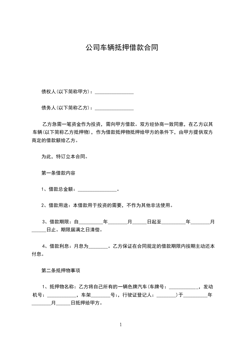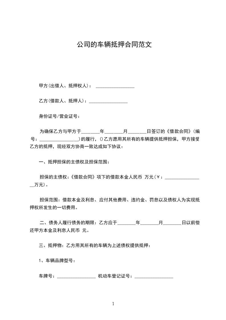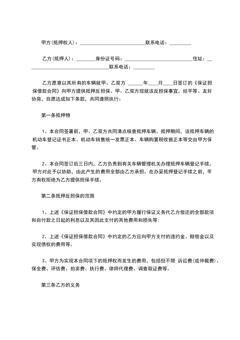 为确保乙方与甲方于________年________月________日签订的《借款合同》(编号:_________________)的履行,()乙方愿用其所有的车辆提供抵押担保,甲方接受乙方的抵押,现经双方协商一致达成如下协议: