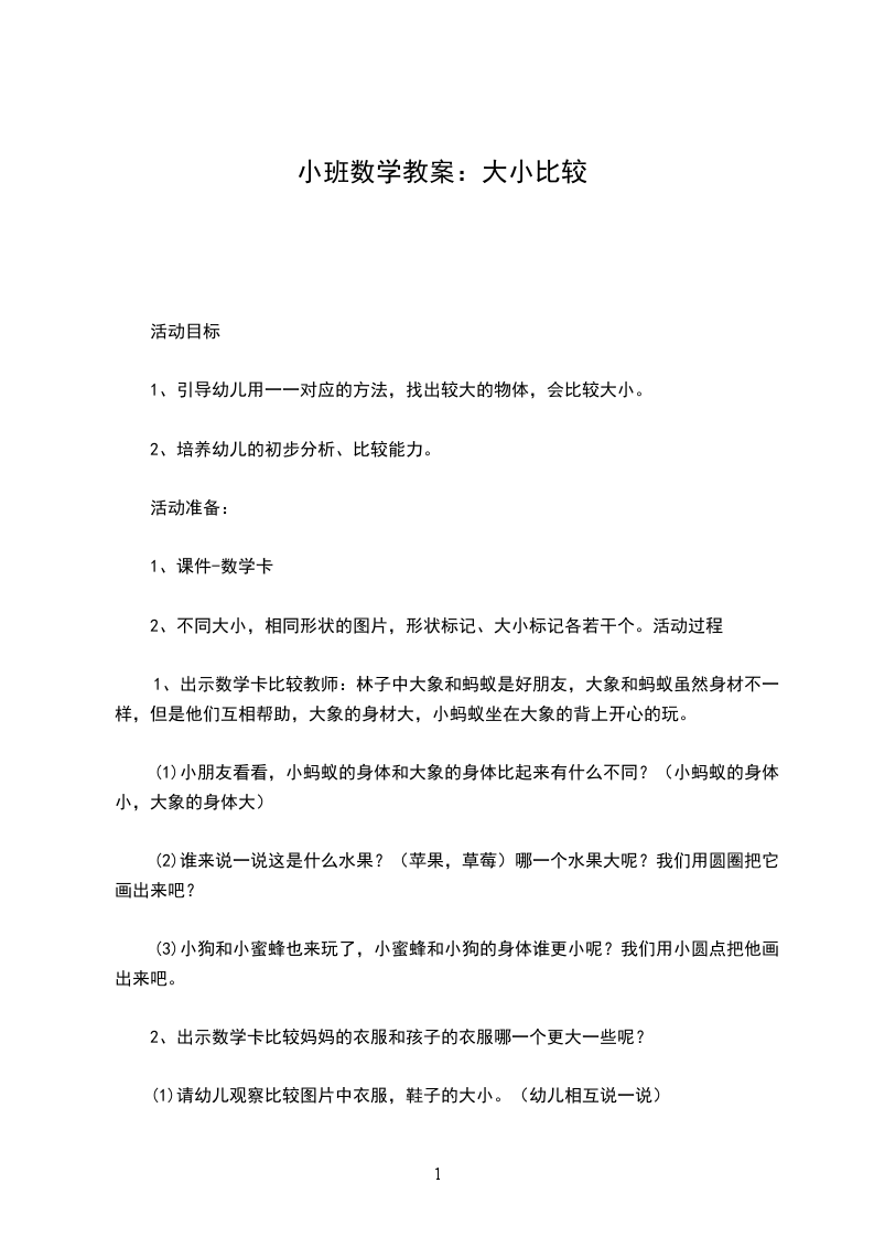 2、在分一分、比一比的活动中,让学生形成初步的观察、分析、比较能力。