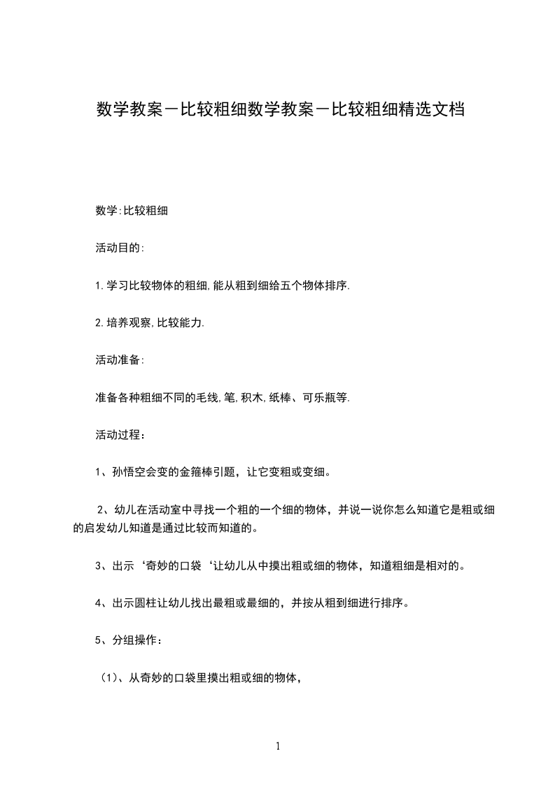 《比较》是上一节课《分类》的延续,是小朋友在帮妈妈整理完衣服后,与妈妈一起放衣服的情景,通过妈妈和小朋友的谈话提出比较厚薄的问题,以此引导学生讨论问题研究问题比较事物的方法。这节课在设计上能吸引学生,上课实际效果中学生能主动积极参与到新知识的学习当中,但游戏的运用还可以设计的更吸引孩子又能把本节课的知识让孩子在玩中掌握。环节的设计也注意了对教材的知识的比较和补充,还渗透了保护环境的教育。但是环节的巧妙并不能代表课堂的成功。在真正上课时,没有想象中的预期效果。首先在备学生中准备的不充分,对学生的回答老师没有很巧妙的回答,需要进一步提高调空能力和语言艺术。其次在出现知识性的问题应该充分让学生表达自己的想法,不要急噪和不允许学生发言的现象。教具和课件应该做的更加精美一点。充分发挥学生在生活中学习数学的情景教学,使数学更加生活化情景化。