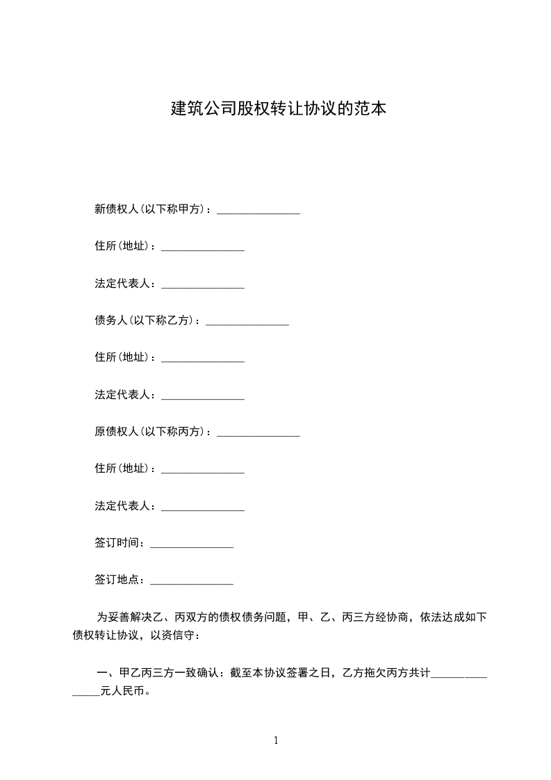 二、甲乙丙三方一致同意,丙方将针对乙方的债权共计元人民币全部转让给甲方行使,乙方按照本协议直接付款给甲方,由乙方于________年________月________日前向甲方支付共计元人民币。