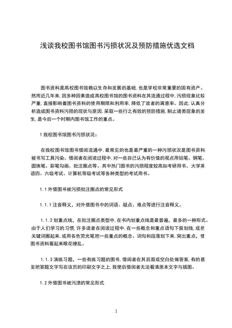 图书资料是高校图书馆赖以生存和发展的基础,也是学校非常重要的国有资产。然而近几年来,因多种因素造成高校图书馆的图书资料在其流通过程中,污损现象比较严重,直接影响着图书资料的使用期限和利用率,降低了读者的满意率。因此,认真分析造成图书资料污损的现状与原因,采取一些行之有效的预防措施,制止诸类现象的发生,是今后一个时期内图书馆工作的重点。