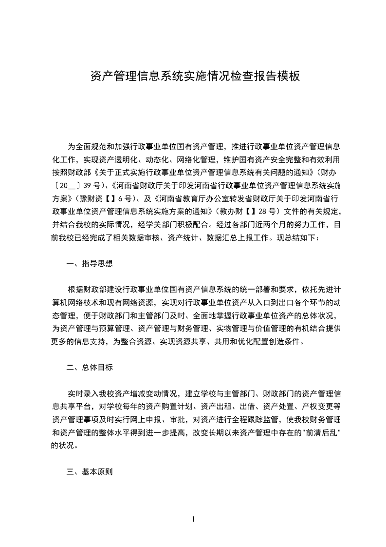 为全面规范和加强行政事业单位国有资产管理,推进行政事业单位资产管理信息化工作,实现资产透明化、动态化、网络化管理,维护国有资产安全完整和有效利用,按照财政部《关于正式实施行政事业单位资产管理信息系统有关问题的通知》(财办〔20__〕39号)、《河南省财政厅关于印发河南省行政事业单位资产管理信息系统实施方案》(豫财资【】6号)、及《河南省教育厅办公室转发省财政厅关于印发河南省行政事业单位资产管理信息系统实施方案的通知》(教办财【】28号)文件的有关规定,并结合我校的实际情况,经学关部门积极配合。经过各部门近两个月的努力工作,目前我校已经完成了相关数据审核、资产统计、数据汇总上报工作。现总结如下: