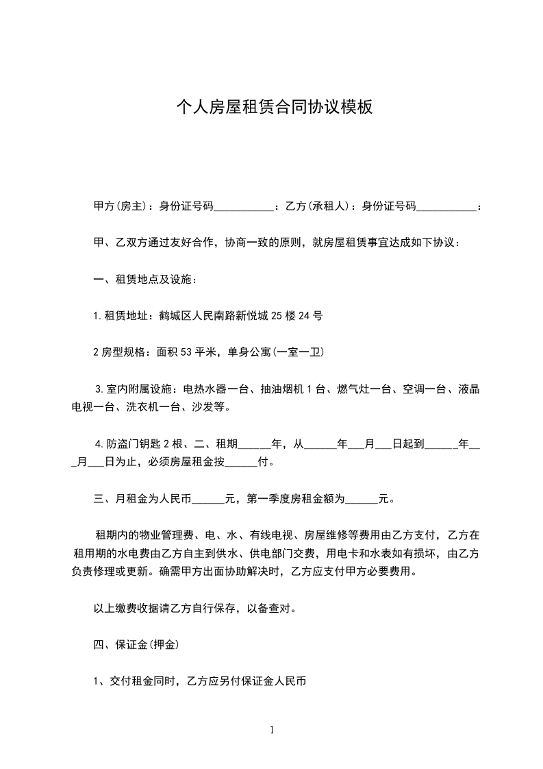 甲方(房主):身份证号码___________:乙方(承租人):身份证号码___________: