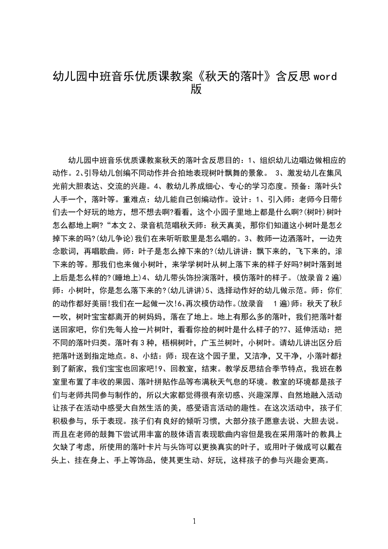 通过观察秋天的叶子、实物,发现秋叶的形、色特点,并用肢体语言、绘画等艺术形式表现秋叶的形态与动态,抒发自己对秋天的感情。