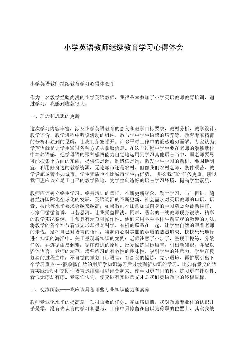 小学教师继续教育是教师教育的重要组成部分,是提高全体在职小学教师整体素质和促进教师专业化的有效途径,也是全面实施素质教育的关键。学习期间,与实际相结合,不断的实践,取得了非常大的进步。现将一些学习体会做个小结。