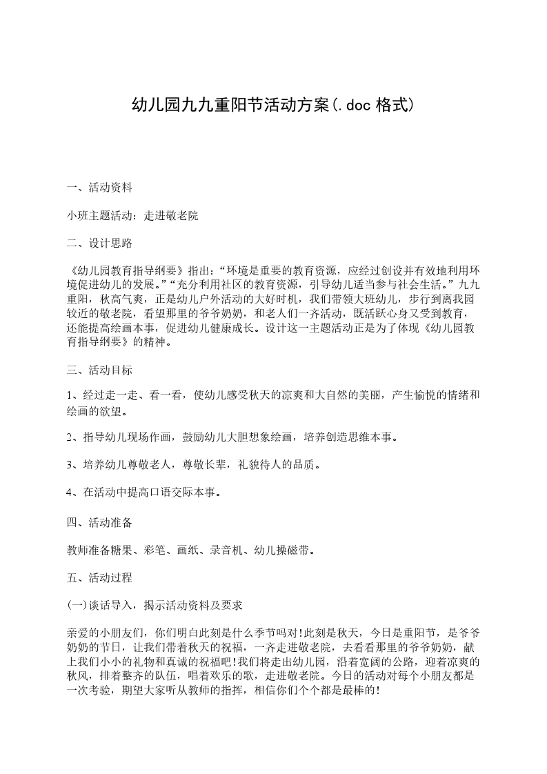 亲爱的小朋友们,你们明白此刻是什么季节吗对!此刻是秋天,今日是重阳节,是爷爷奶奶的节日,让我们带着秋天的祝福,一齐走进敬老院,去看看那里的爷爷奶奶,献上我们小小的礼物和真诚的祝福吧!我们将走出幼儿园,沿着宽阔的公路,迎着凉爽的秋风,排着整齐的队伍,唱着欢乐的歌,走进敬老院。今日的活动对每个小朋友都是一次考验,期望大家听从教师的指挥,相信你们个个都是最棒的!