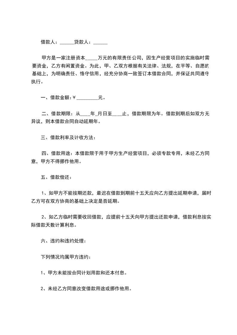 1、甲方应于________年________月________日前一次性提供给乙方合同约定的借款数额。