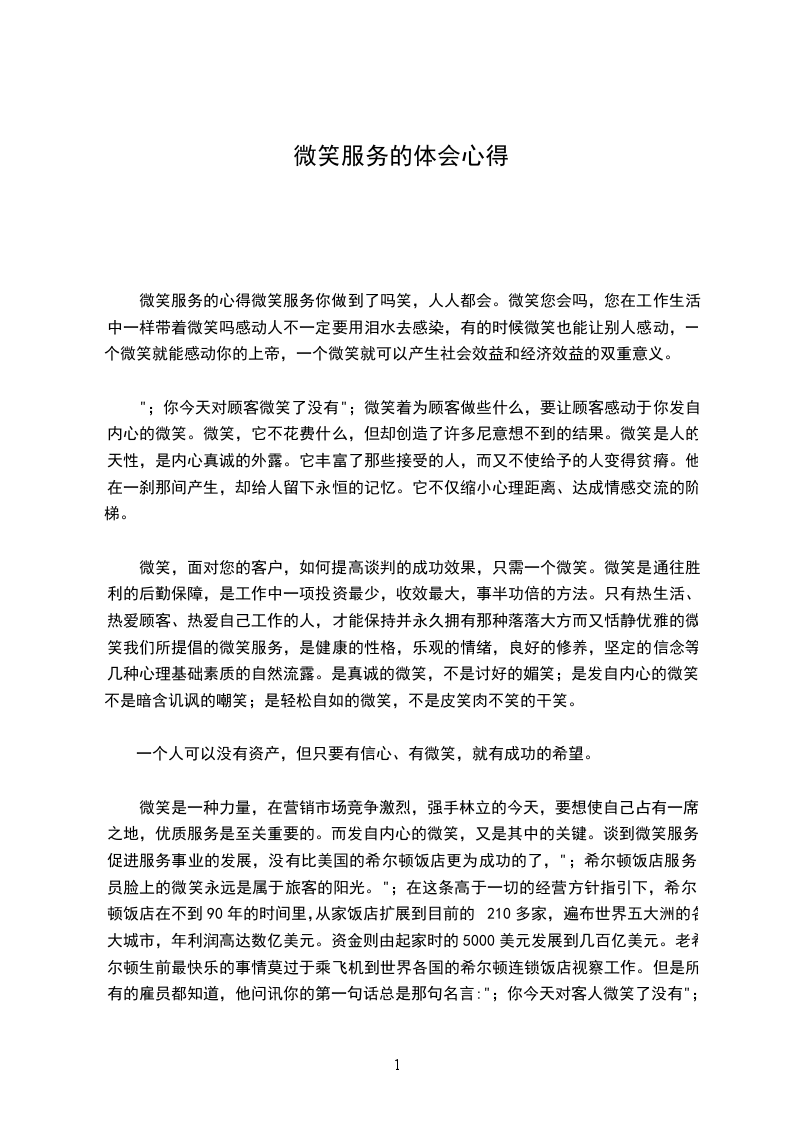 当世界著名的旅店经营之王希尔顿在德克萨斯的第一家旅馆经营中稍有成效时,他母亲对其取得的成绩却不屑一顾。她指出,要使经营真正得到发展,只有掌握一种秘诀,这种秘诀简单、易行,不花本钱却又行之长久。希尔顿冥思苦想,终得其解。这秘诀不是别的就是微笑。他发现只有微笑才同时具备以上4个条件,且能发挥强大的功效。以后“微笑服务”就成了希尔顿旅馆经营的一大特色。50多年来,希尔顿向服务人员问得最多的一句话就是“你今天对客人微笑了没有”