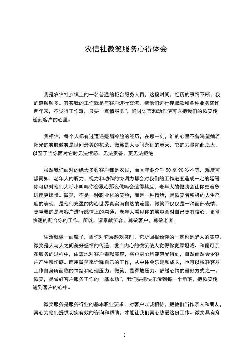 中国有句老话叫做“朱唇未启笑先闻”,微笑着赞扬他人使对方感到你的诚心,微笑着批评他人使对方感到你的善意,微笑着拒绝他人使对方体谅你的难处。现在我们正在开展“标准基层行、社”创建工作,我们要从自我做起,从身边小事做起,加强自身的服务意识,让每一位顾客都有“笑迎天下客,满意在我家”的感觉,把微笑服务的优良传统继续传承下去,让“宝石花”般的笑容开遍祖国乃至世界各地,使最温馨,最真诚,最优质的微笑服务,带给我们最心爱的顾客。给信用社带来更多的利润与过硬的品牌形象,我坚信在不久的将来还会有更多感人的画面出现在你们的眼前