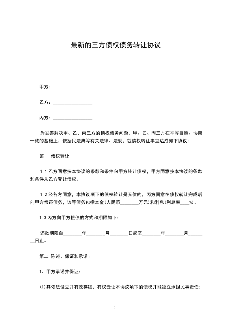 1.2经各方同意,本协议项下的债权转让是无偿的,丙方同意在债权转让完成后向甲方偿还债务,该等债务包括本金(人民币________万元)和利息(利息率____%)。