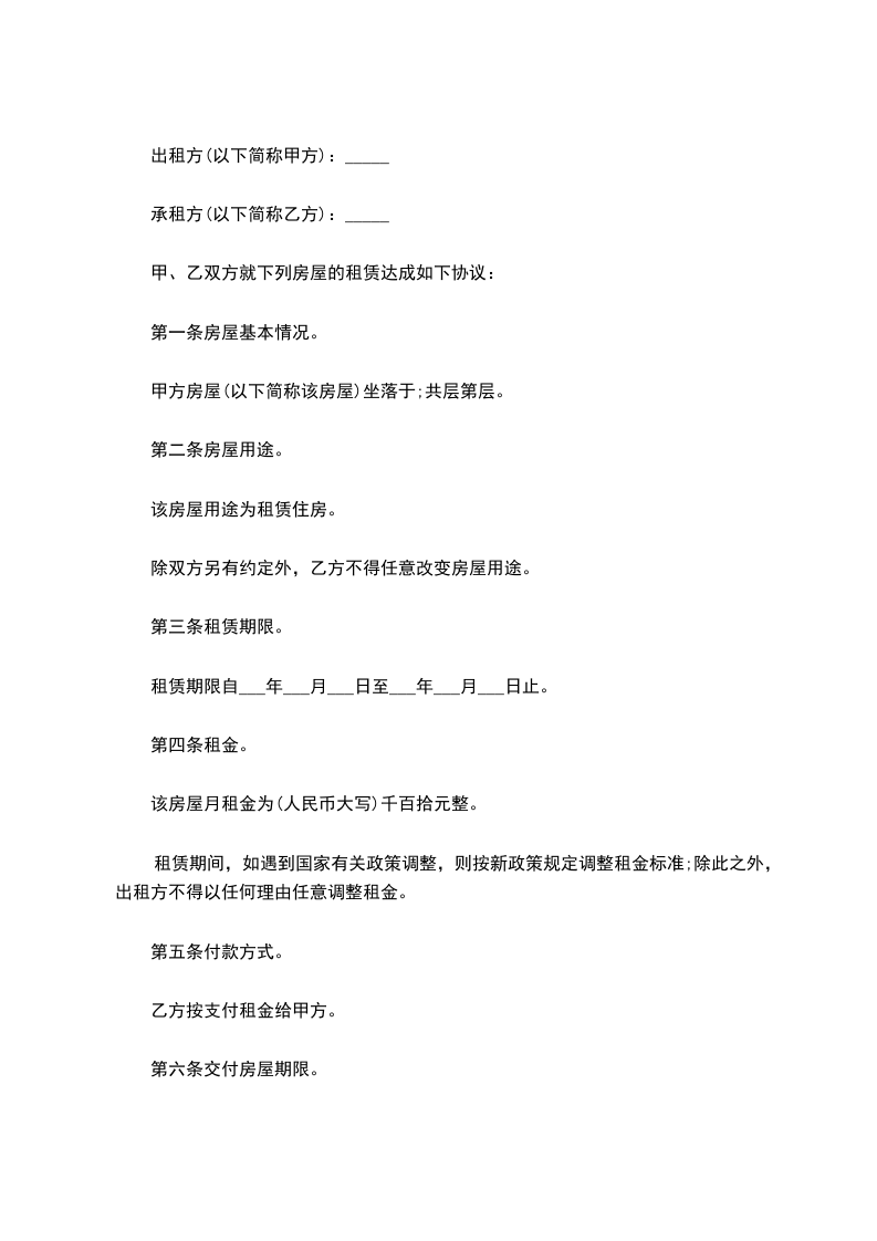 第六条交付房屋期限。