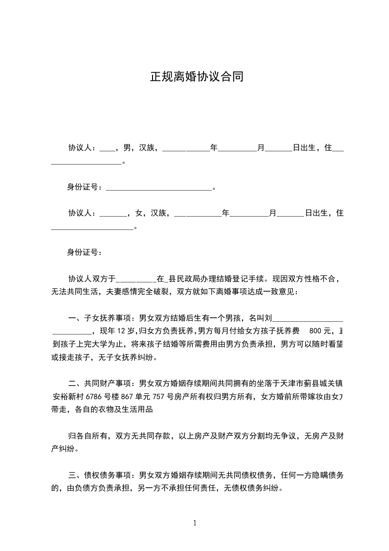 协议人:_______,女,汉族,____________年__________月_______日出生,住_____________________。