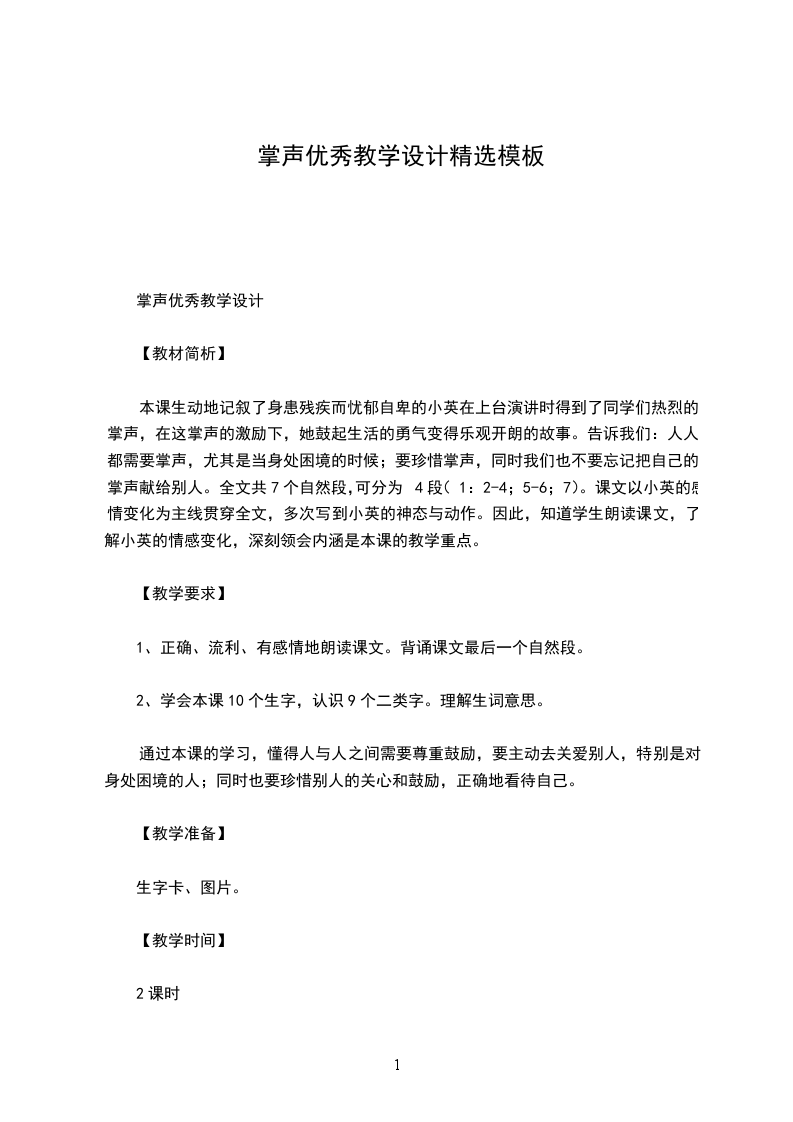 掌声优秀教学设计