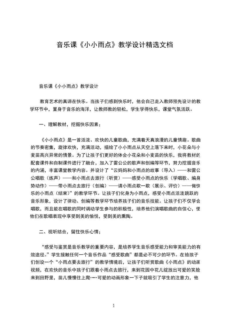 音乐课《小小雨点》教学设计