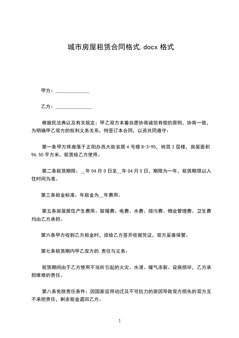 承租方:______(以下简称乙方)身份证:__________________________