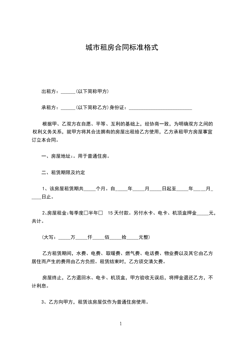 出租方:______(以下简称甲方)